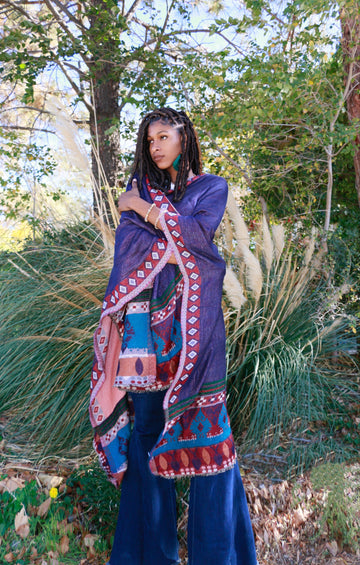 This snuggly soft tribal wrap is the statement piece that you never knew you needed. It's long, woven cut provides a versatile arrangement of design and colors that pairs with your favorite pair of jeans or an ultra cool retro skirt with knee boots.