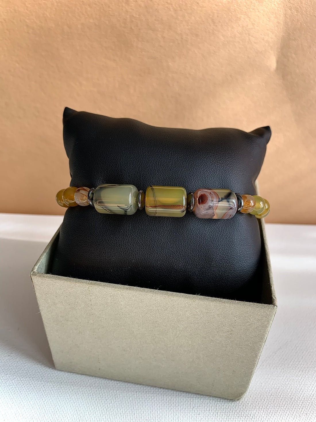 Concentration. Magnetism. Protection. This bracelet is madeΒ of a yellow agate stone beads and hematite accent...