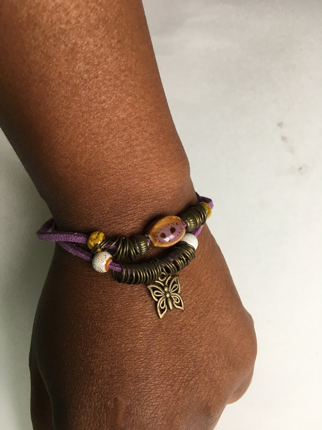 Vegan suede cord with coil and butterfly. Ceramic beading.