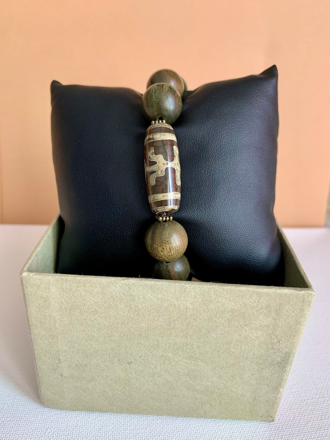 Menβs Tibetan Quartz Stone and Wood Bracelet