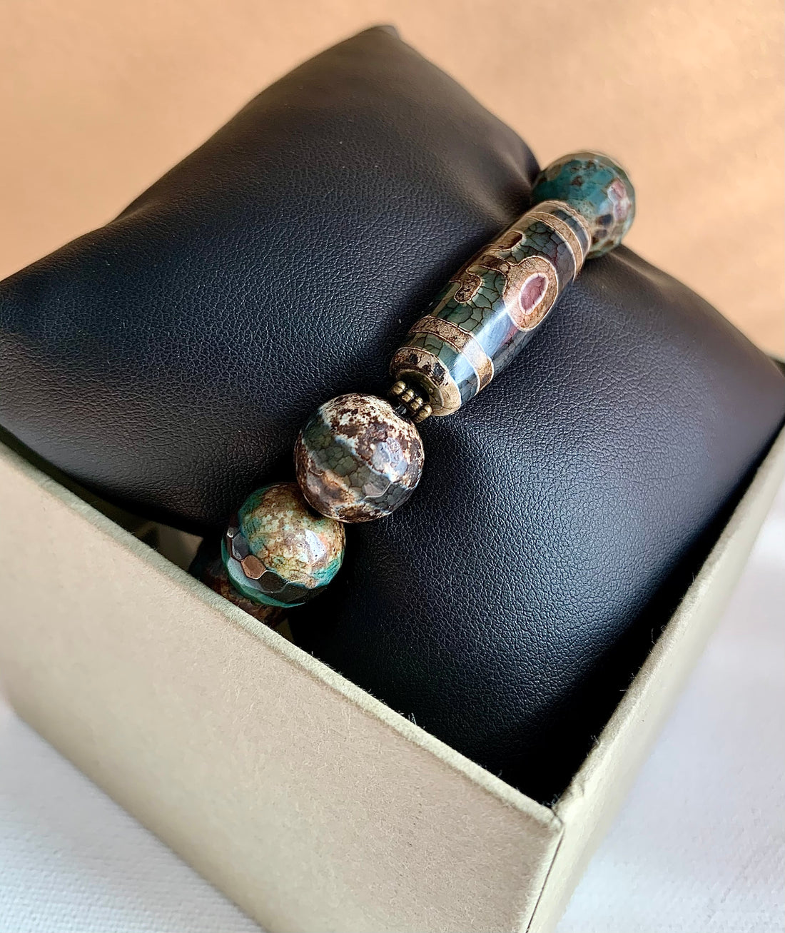 Tibetan and Faceted Agate Stone Bracelet