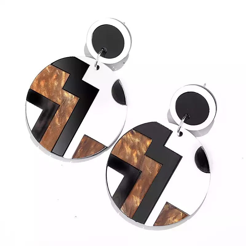 Such a modern chic little pair of earrings. 2 inches in diameter and fairly light...