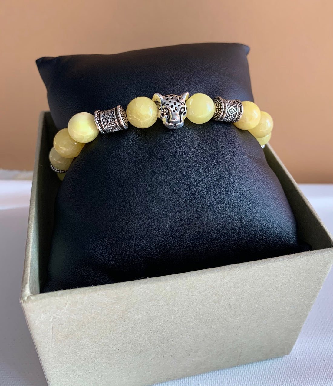 Stylish with 2 tones, this bracelet is madeΒ of a rarely seen leopard agate stone. Itβs...