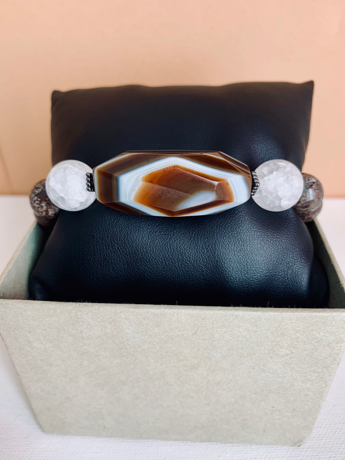 Healing. Acceptance. Truth. This bracelet is madeΒ of a brown agate stone beads. Features an elastic...