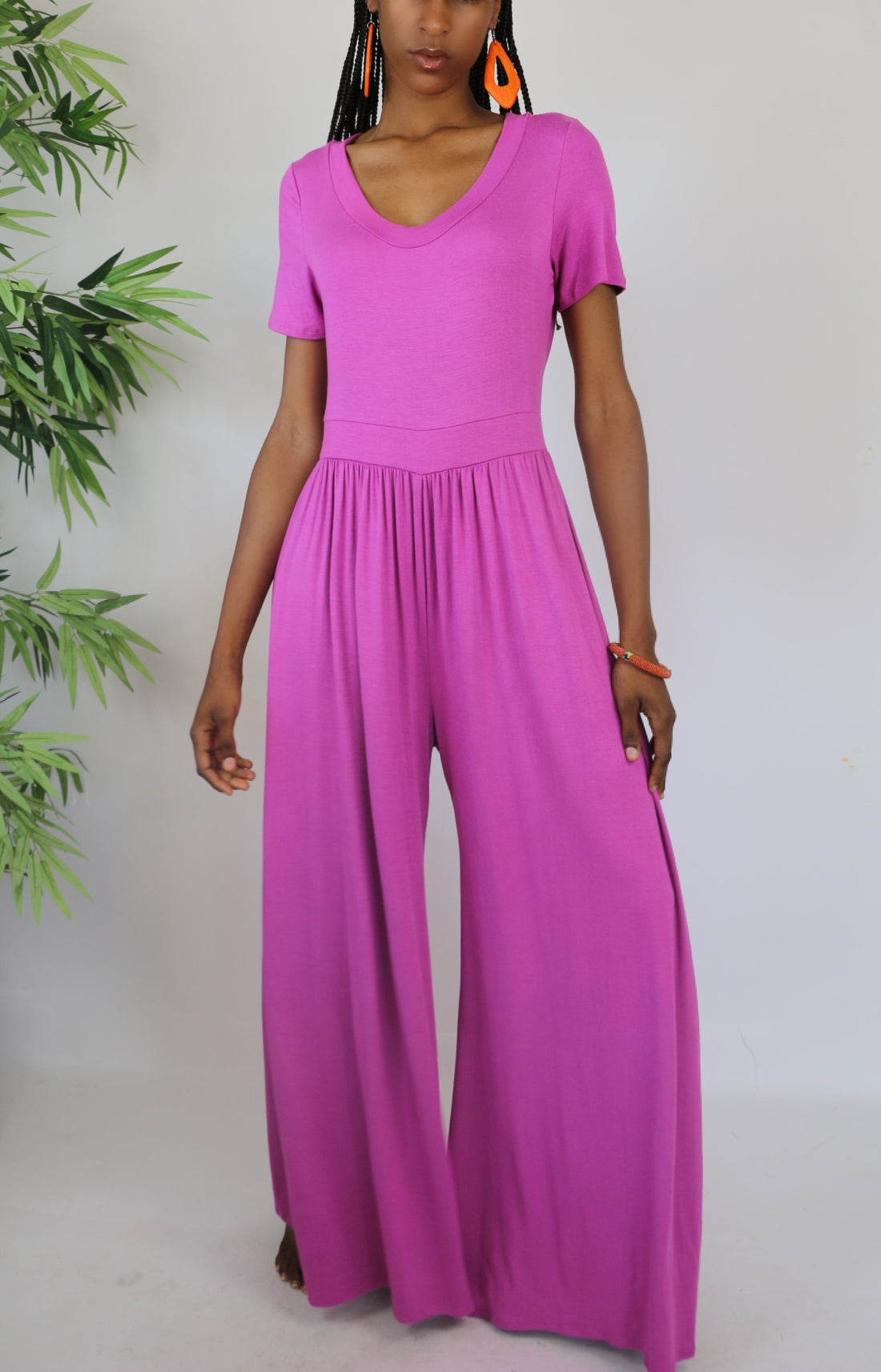 You will love the style and fit of this short sleeved malu jumpsuit. This 70βs...