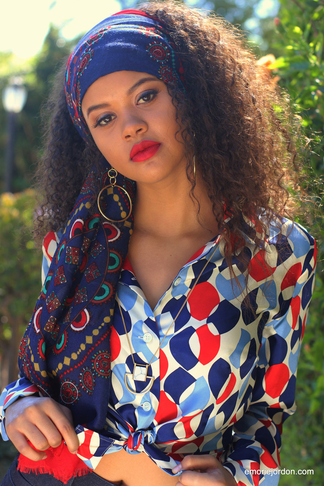 I picture this royal red beauty with a head wrap and fitted jeans.Β She's versatile...
