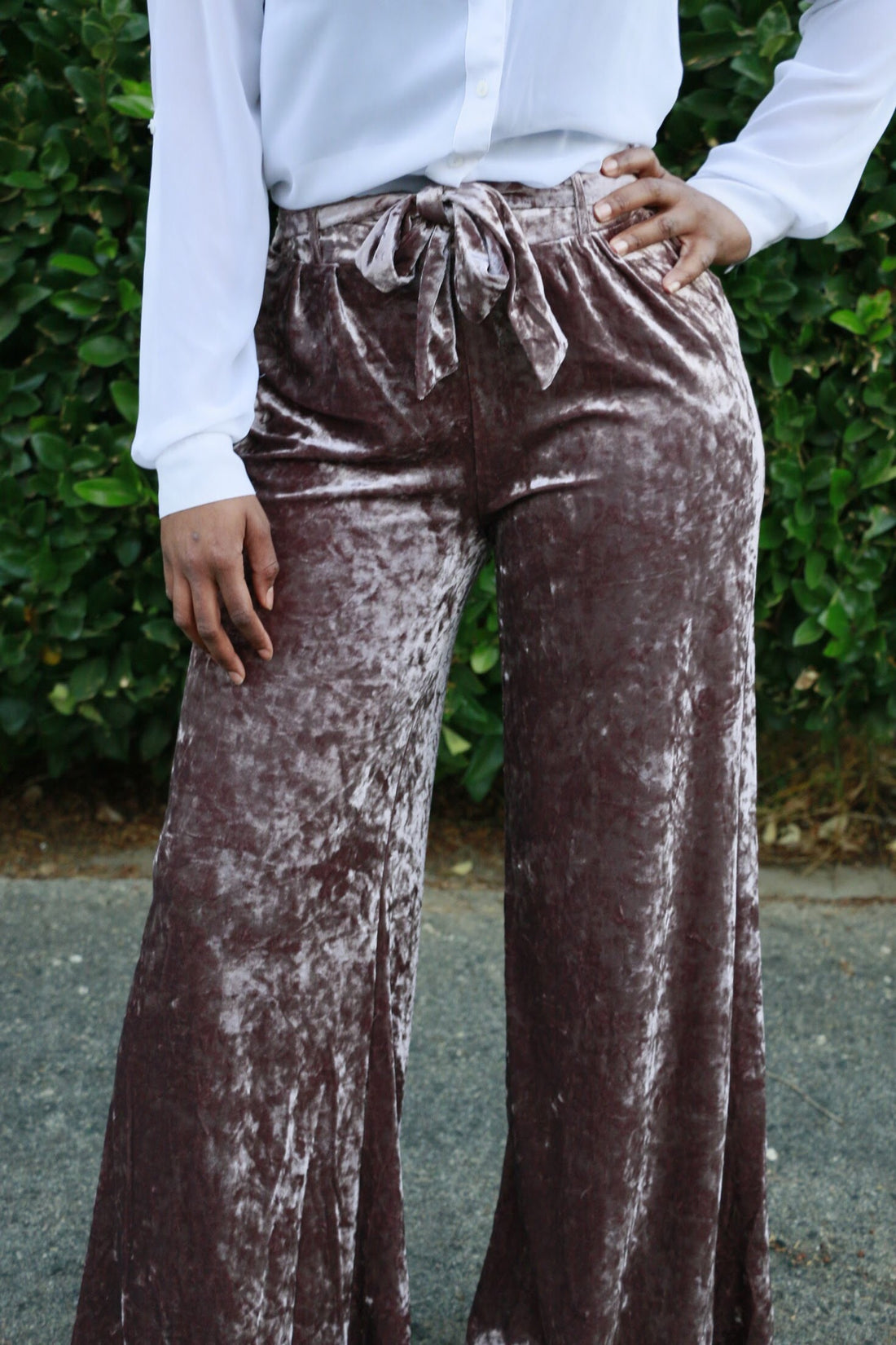 Champagne colored velvet pants. Perfect for the holidays and New Years fun!Β Comfy and fits...