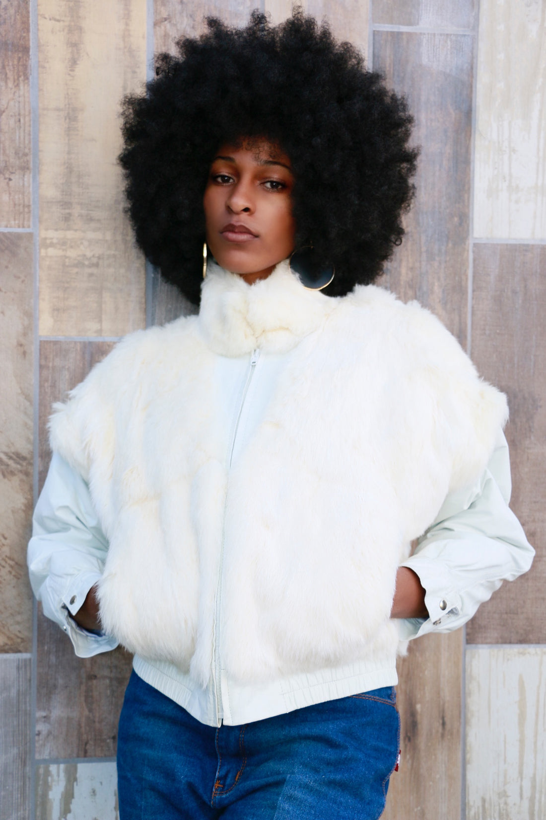 Suuuper soft fur bomber jacket. Zipper front covered with vegan leather.Β The softness of this...