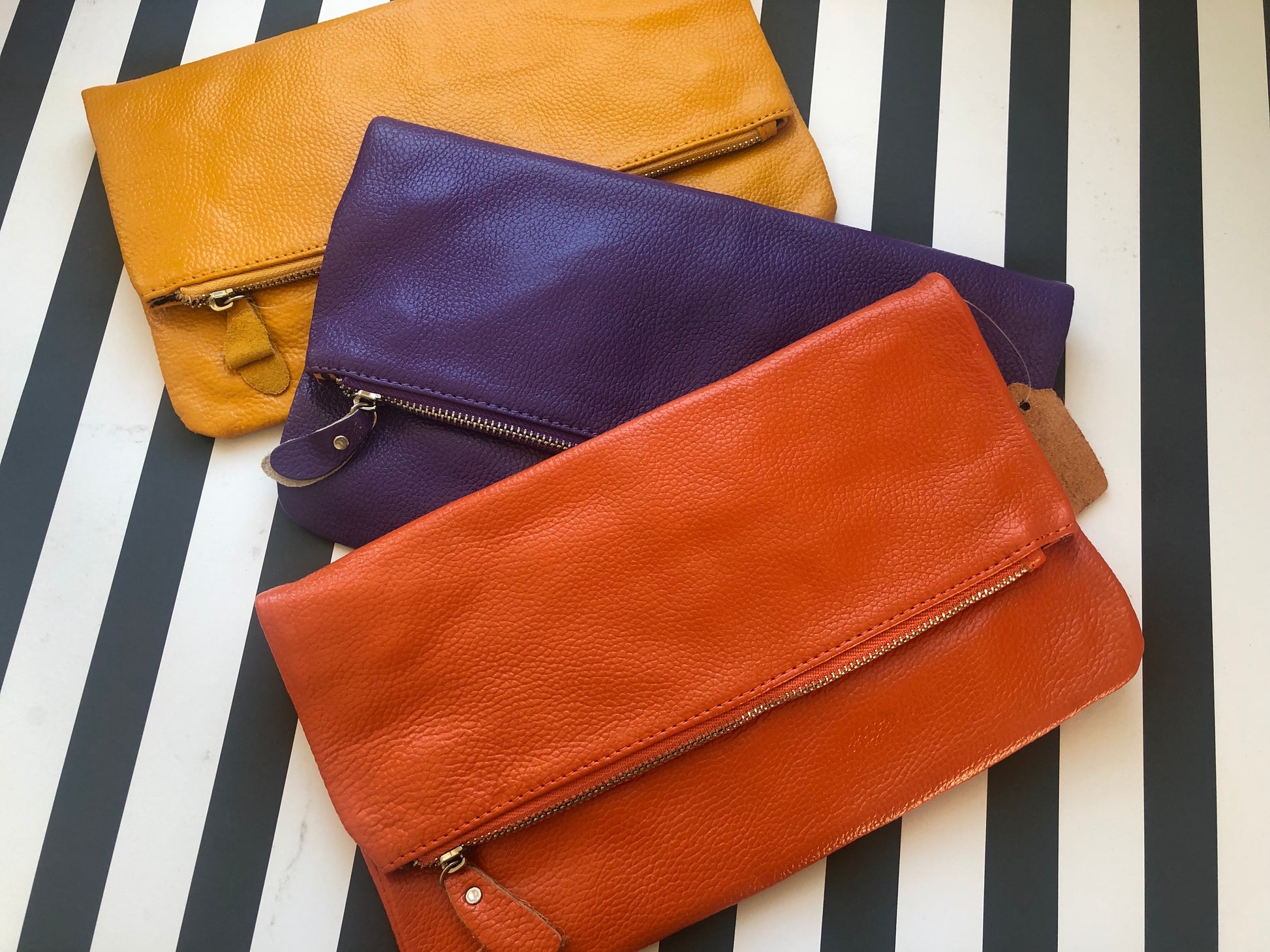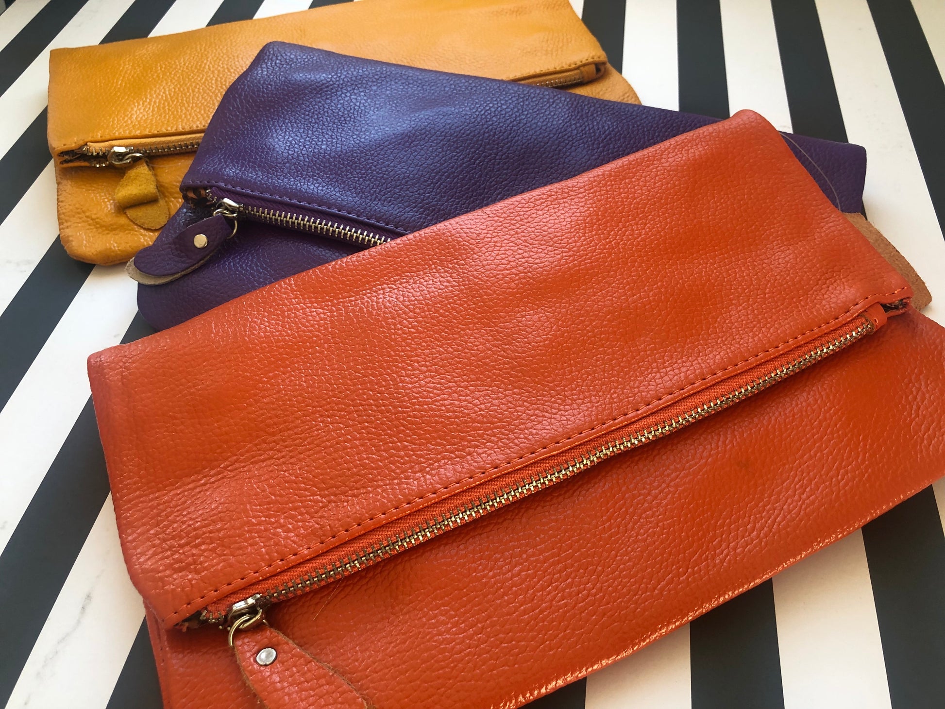 Gorgeous genuine leather clutch purses with silver zipper and detailing. These girls are made from repurposed leather. You will love the quality and weight!