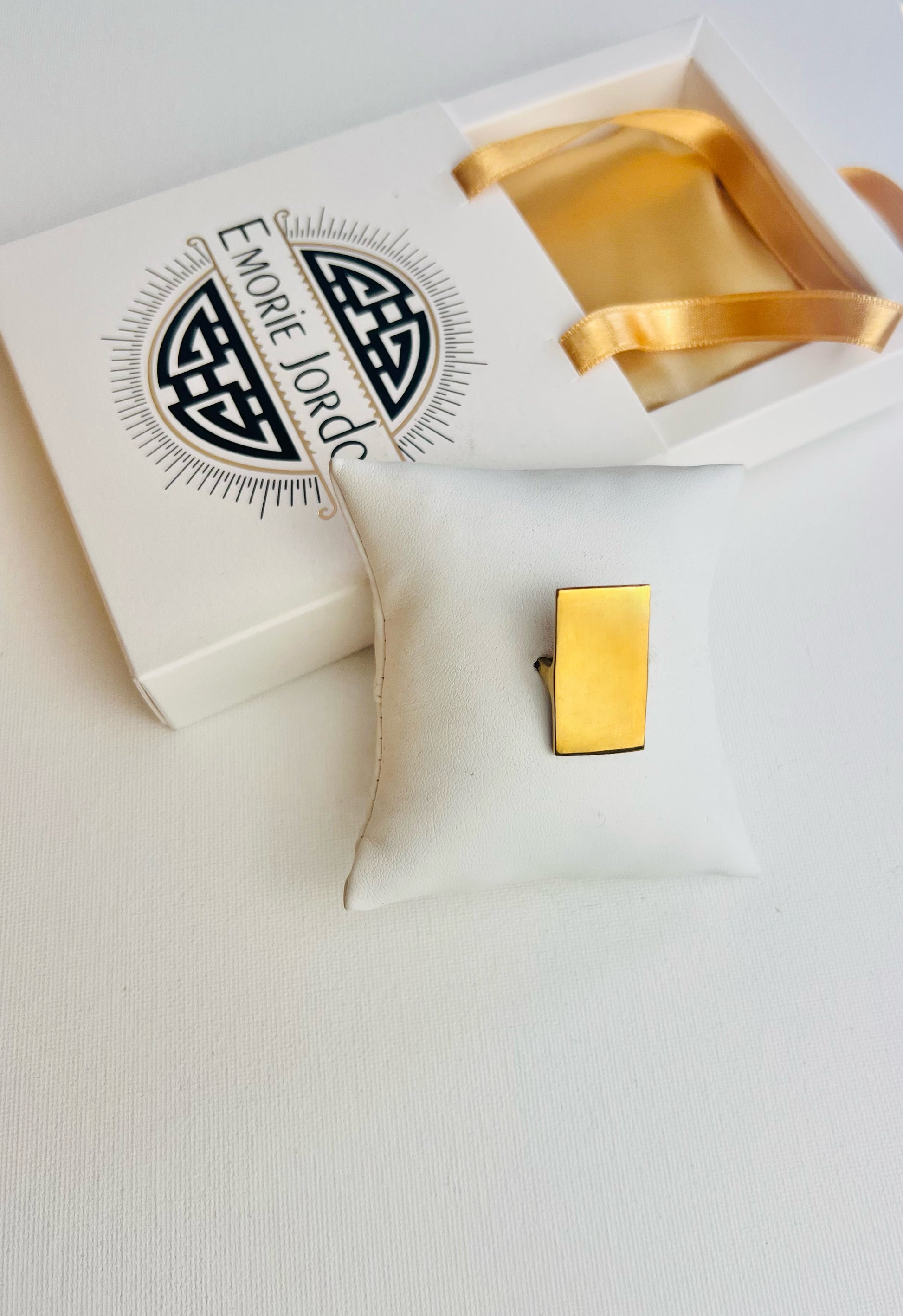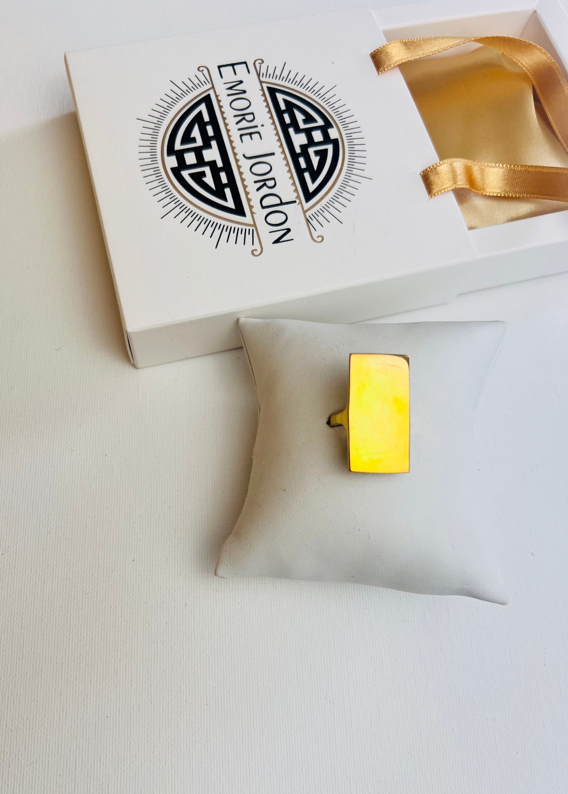 This beautiful rectangle bar cut, ring was crafted and designed by Kenyan artisans. It is made of African brass (which is a make up of copper and zinc). It’s adjustable.