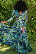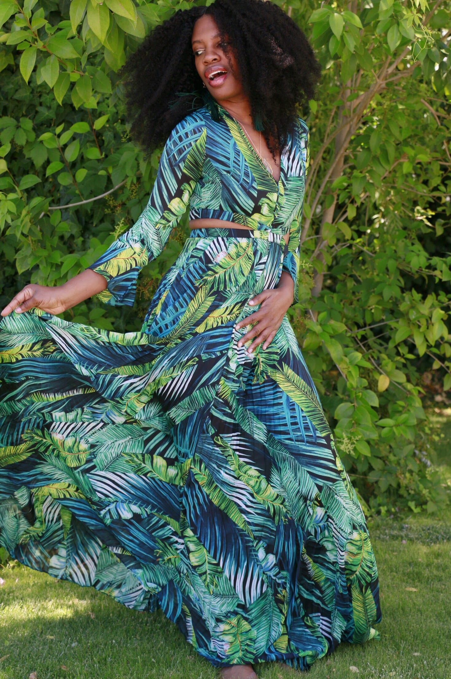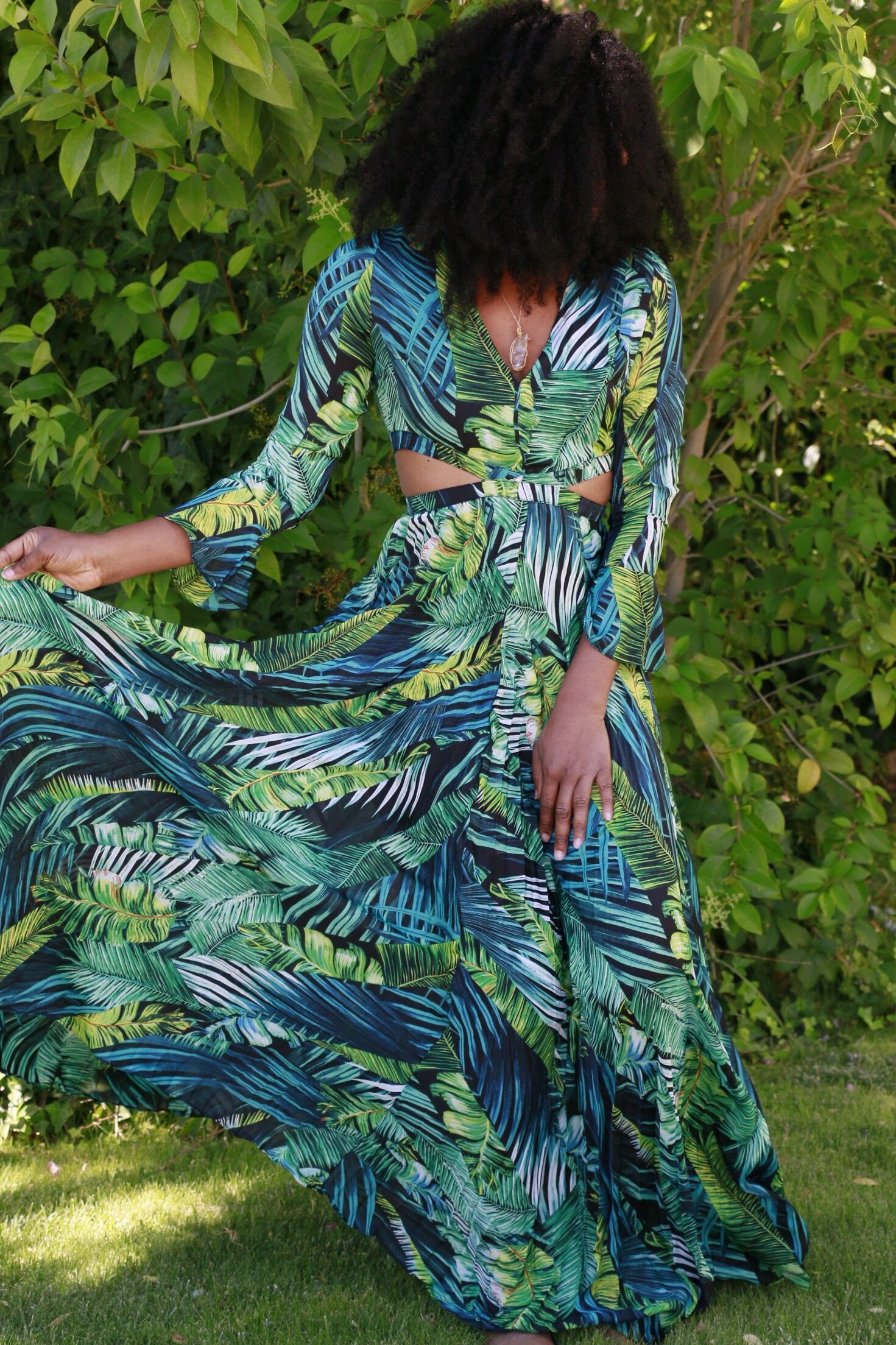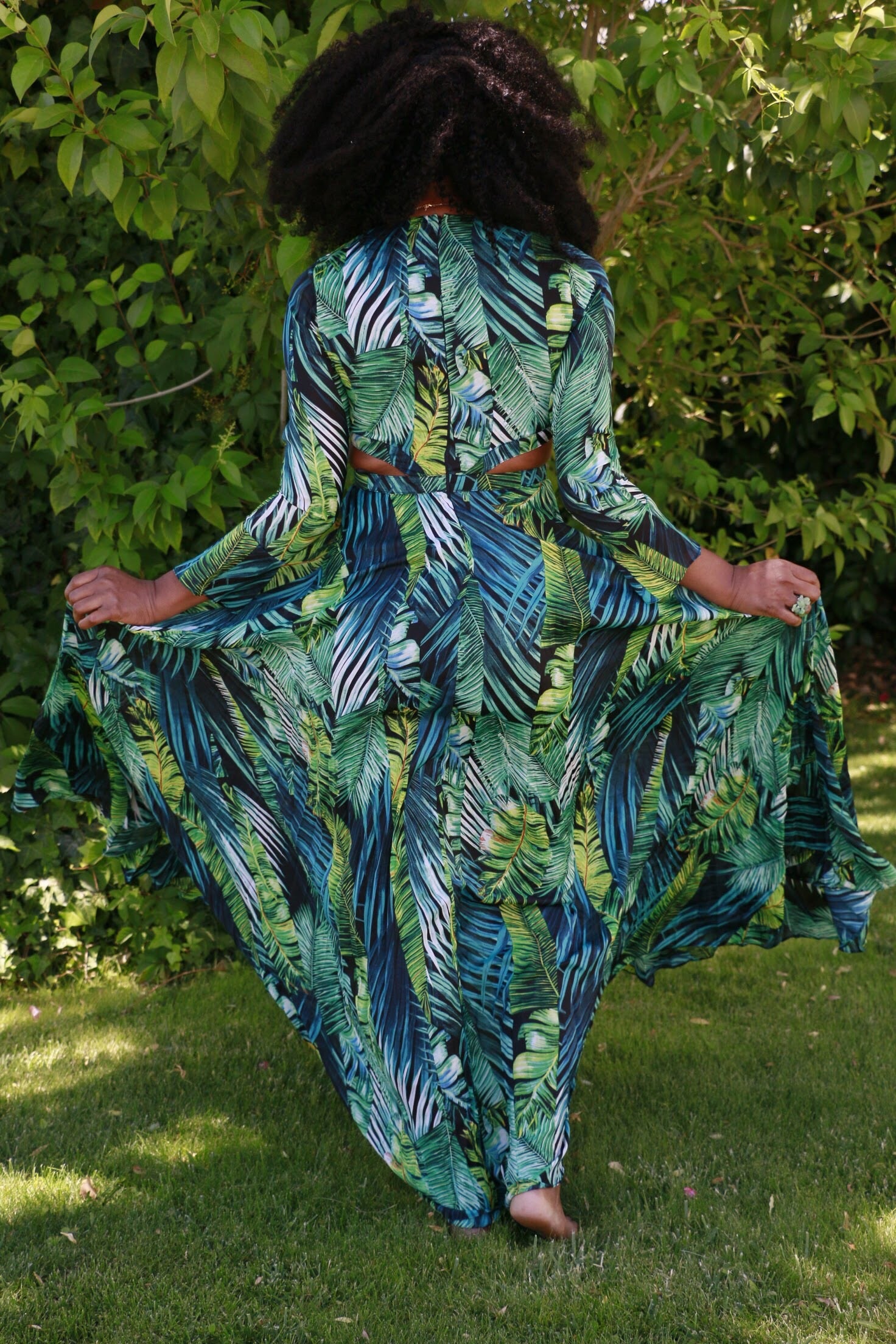 Gorgeous maxi dress with pleated skirting. Amazing feeling fabric with a beautiful flowy design. Peeking, waist cut-outs for a touch of sexy.