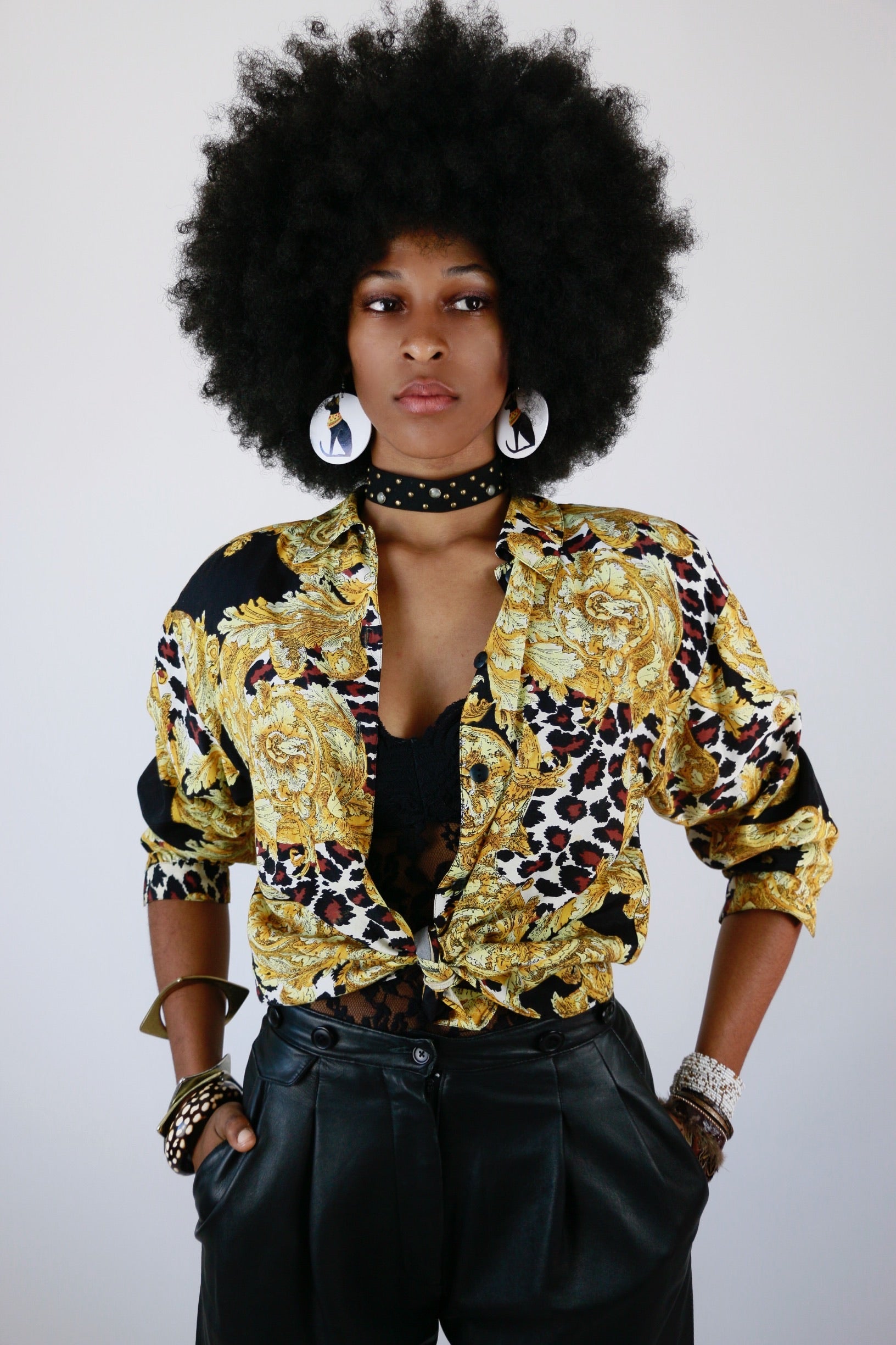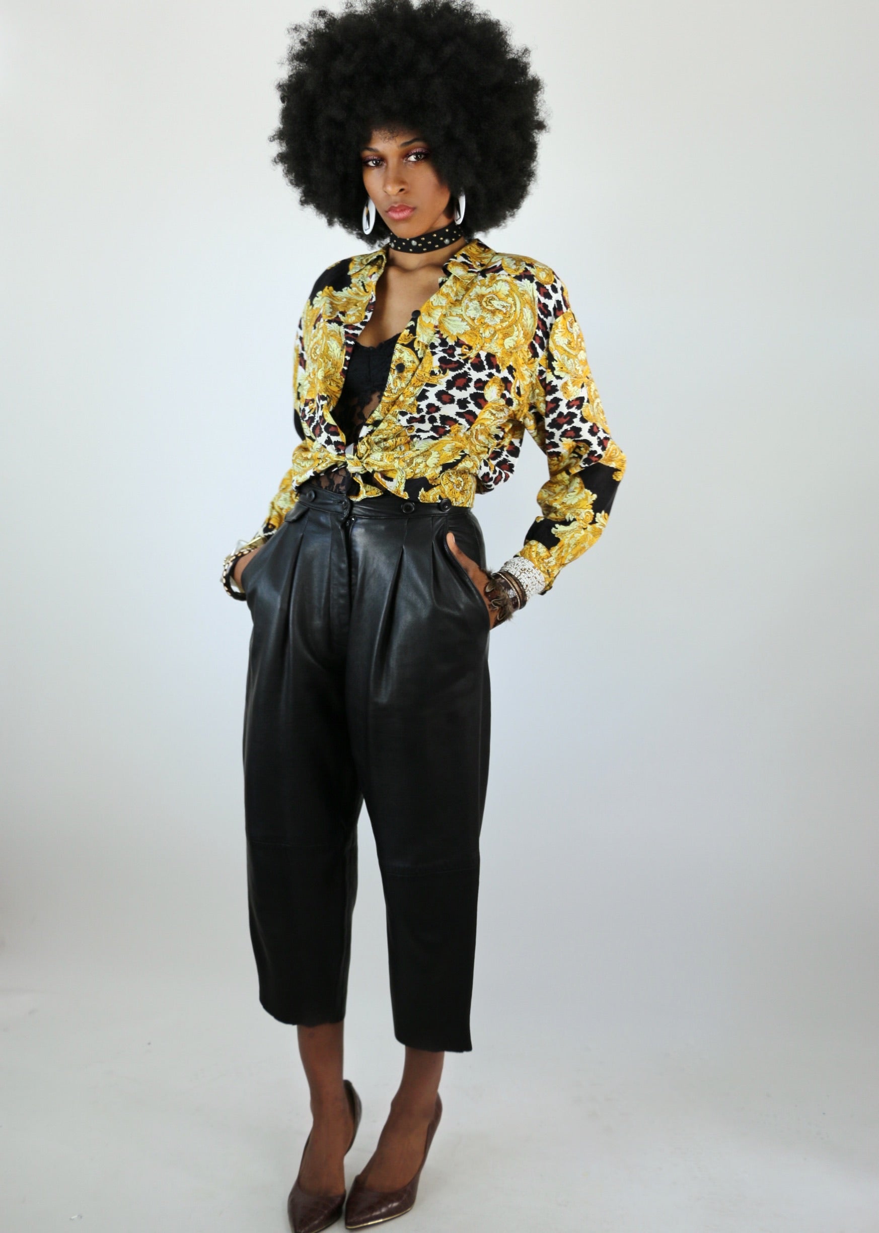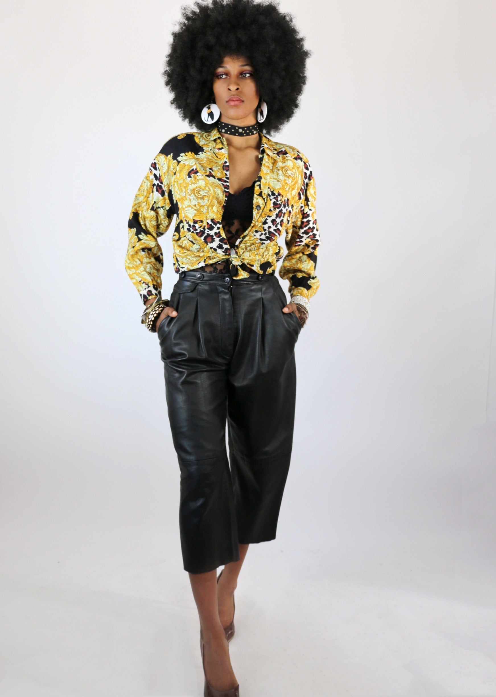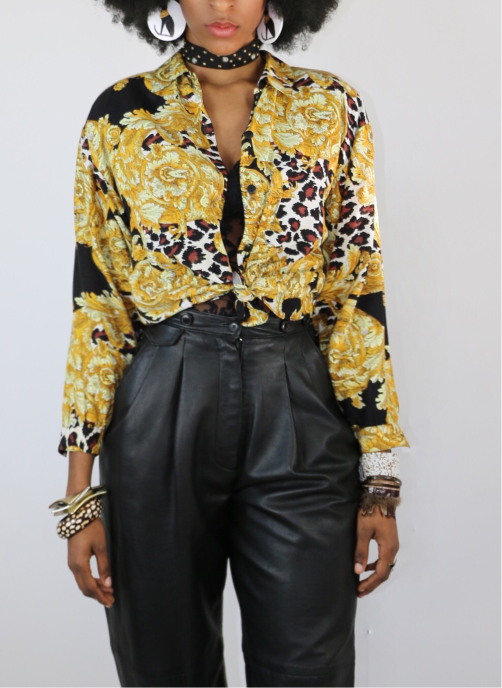 This baroque and leopard mix print is oh so retro chic and classic! It gives off an luxe vibe when paired with satin slacks or a mini leather skirt. There are so many ways to wear this little number.