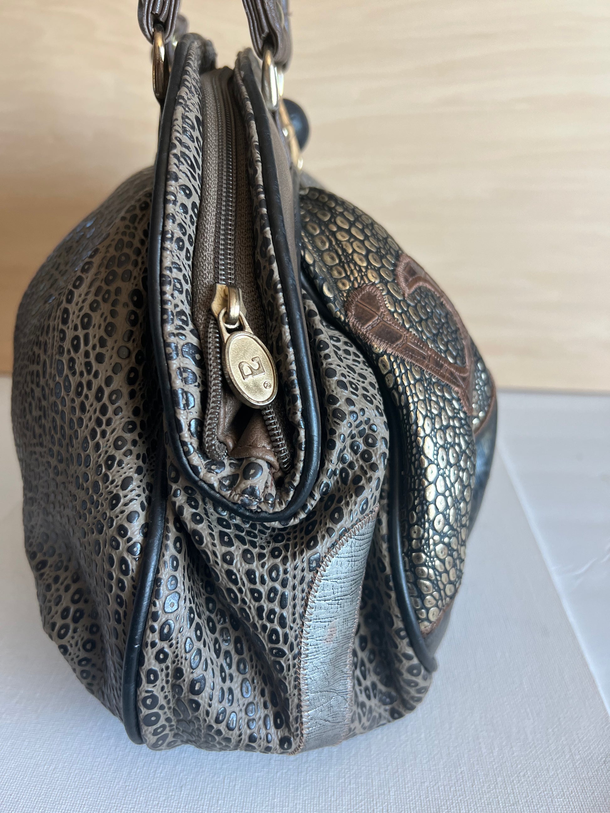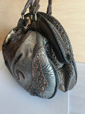 Vintage NAS genuine leather and textile hobo shoulder bag.