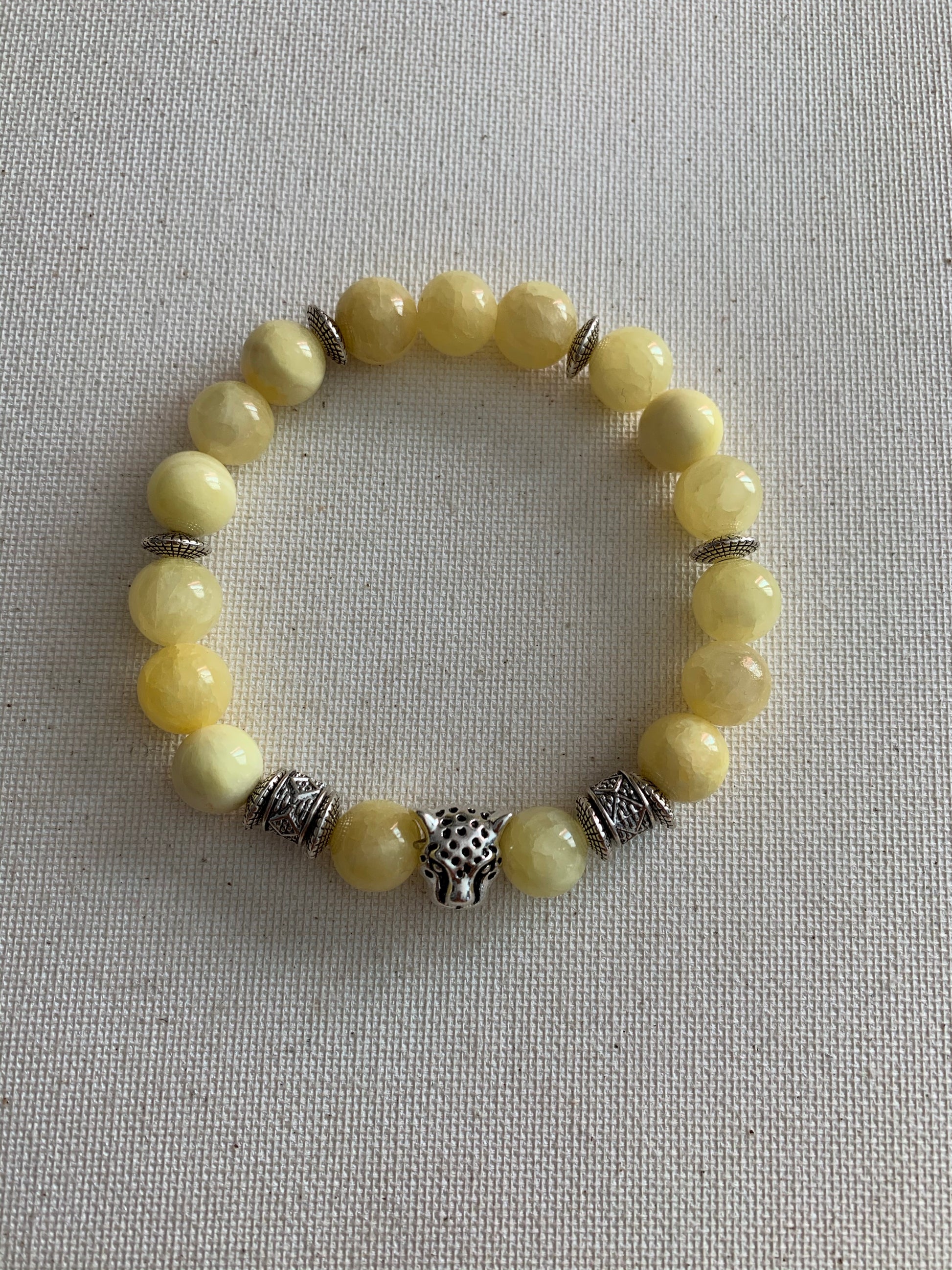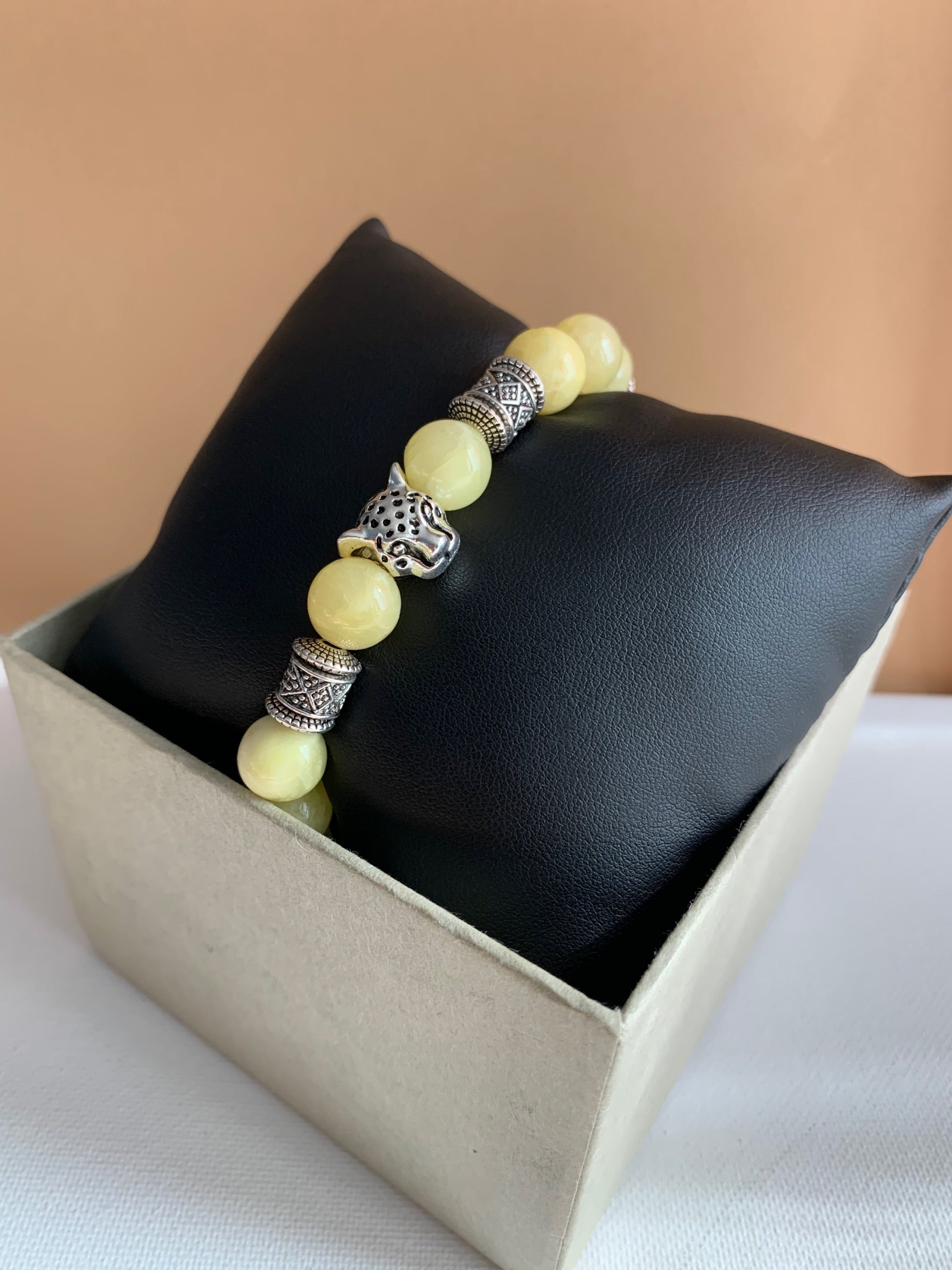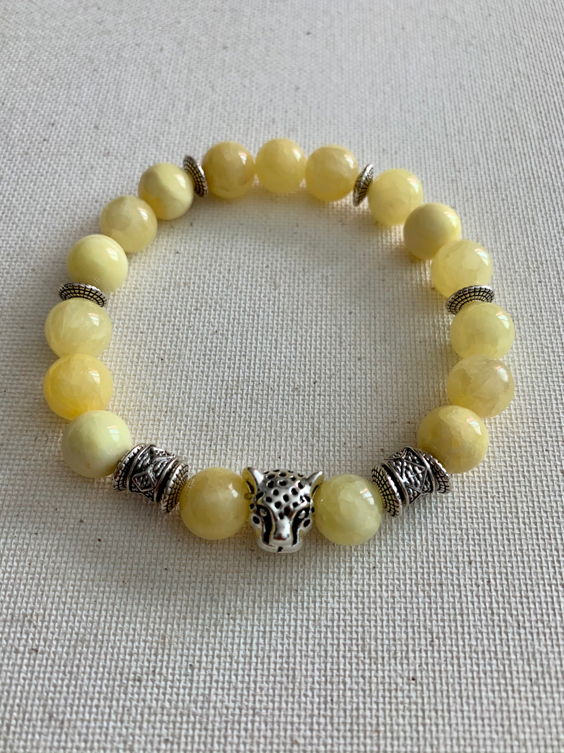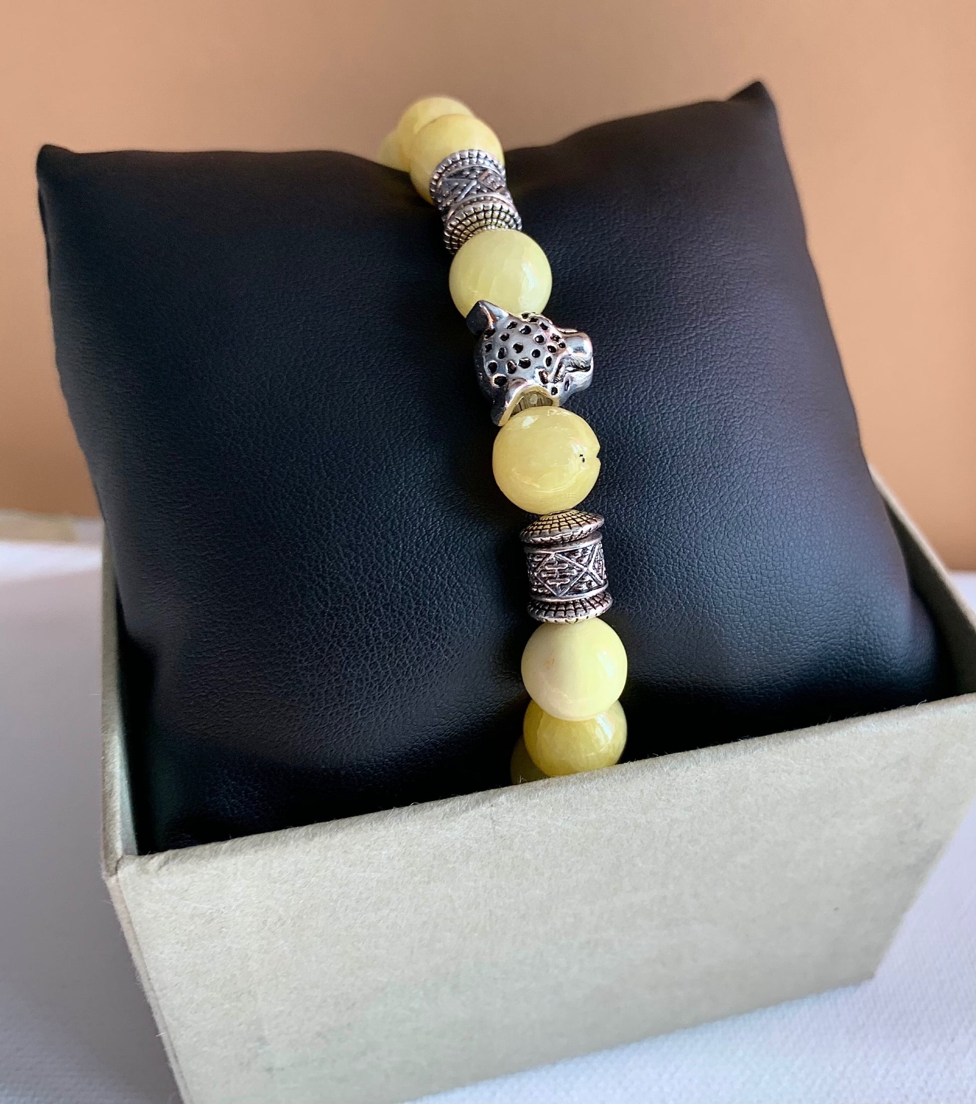 This bracelet is made of a Jasper stones. Features an elastic band that’s easy to slide on.